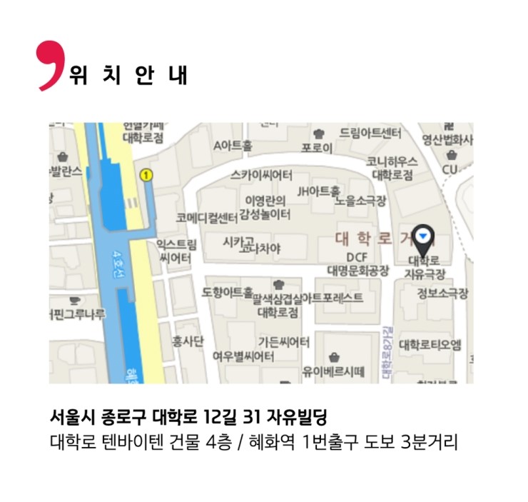 혜화역 도보 3 분 / 지상 4층 / 대학로 최고의 쾌적한 연습실 /