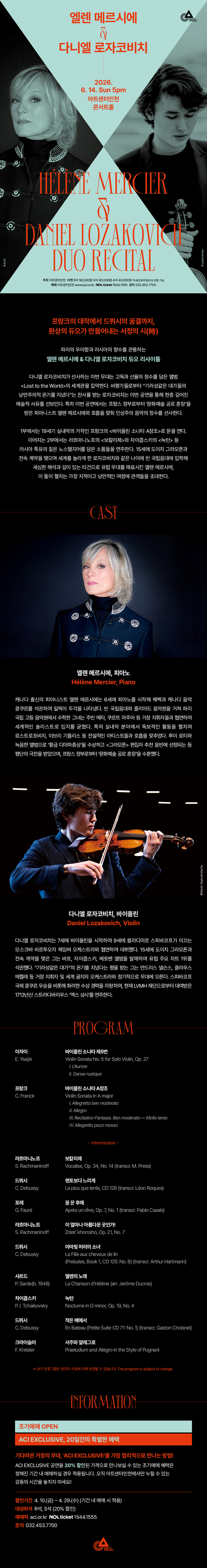 엘렌 메르시에 & 다니엘 로자코비치 듀오 리사이틀 [인천]