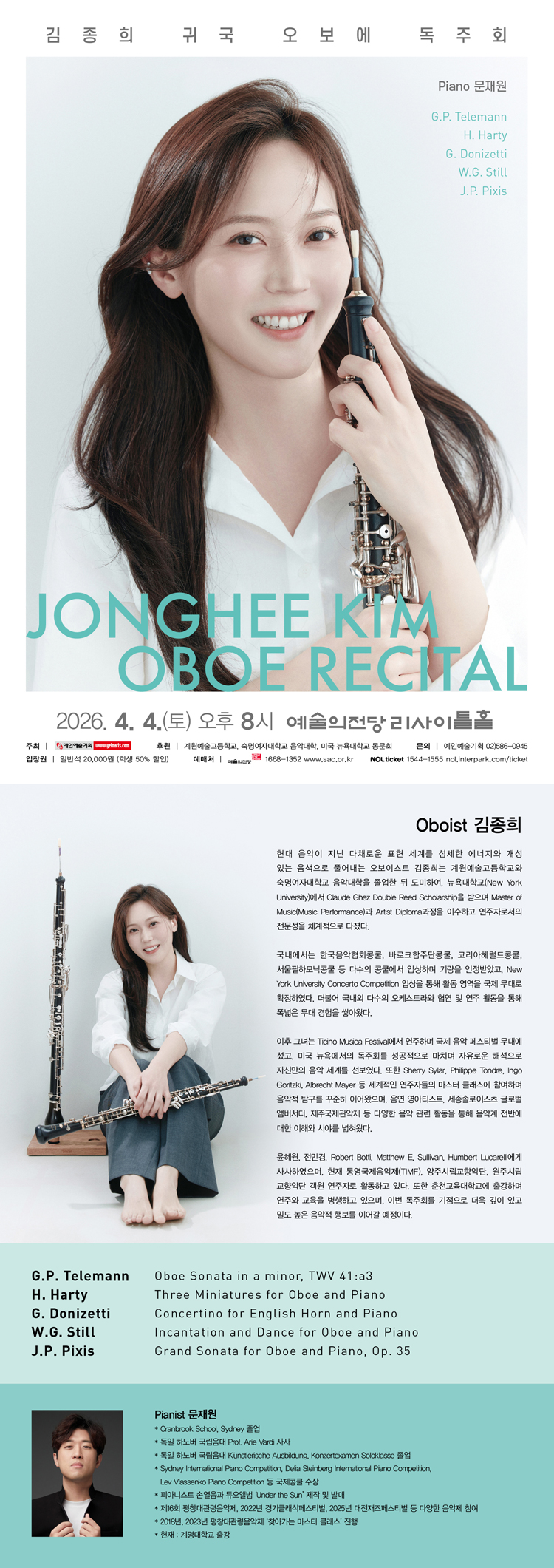 김종희 귀국 오보에 독주회