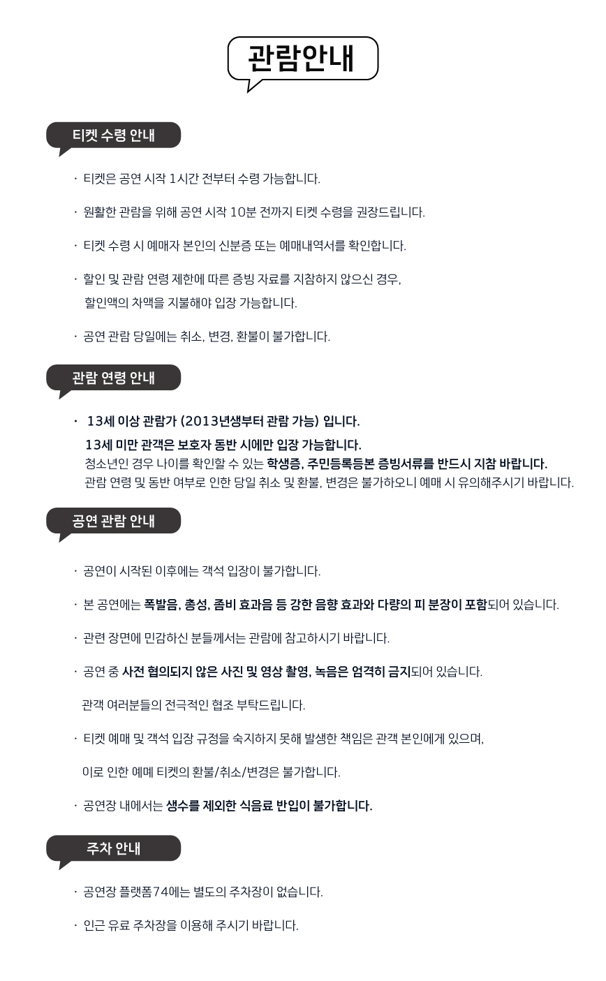 화요일 ~ 금요일(20:00), 토요일(15:00,19:00), 일요일(15:00)